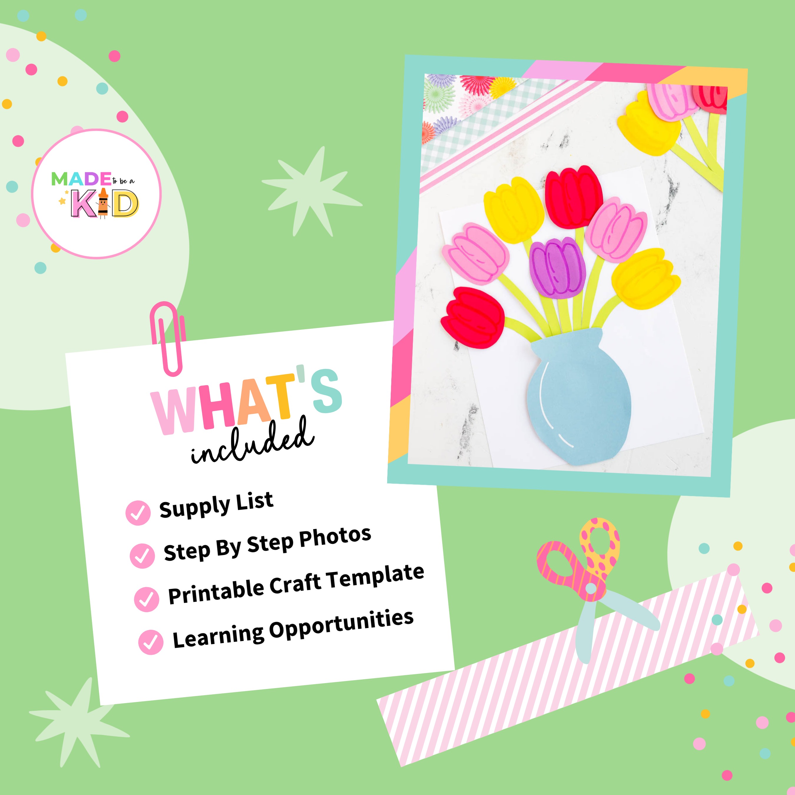 This 4-page digital download provides everything you need to guide the craft with ease. With the included template, kids can cut and assemble their tulips while practicing fine motor skills and exploring the natural beauty of flowers.